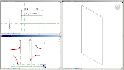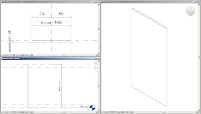 Vamos começar por construir o painel que irá corresponder, por exemplo, a uma porta (este poderá posteriormente inserido numa família da porta (família aninhada – nested family). Não vou descreve exaustivamente estas operações, mas apenas criei 3 parâmetros: comprimento, altura e espessura.