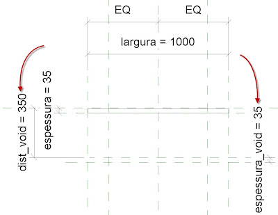 Criados os planos, vamos agora criar 2 parâmetros: um para podermos controlar a espessura do Void - espessura_void – e outro para controlar o afastamento deste ao painel da porta - dist_void (o parâmetro espessura_void não era necessário, bastando para isso utilizar o espessura, garantindo assim que a espessura do Void fosse igual à do sólido).