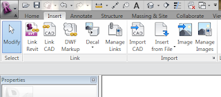 De seguida no novo projecto no menu Insert, escolhemos o "Insert from File" e selecionamos a informação exportada do ficheiro anterior. Desta forma poderemos resolver a questão de retirar um workset de um projecto, além disso este processo também permite aligeirar o peso do ficheiro, assim como retirar informação não pertinente de divulgação, em especial em processos de partilha com terceiros do nosso projecto, por exemplo para enviar a arquitectura para as especialidades.